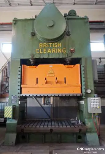 350 Ton British Clearing F-4350-108 Straight Side Press, Air Clutch, Custom Stop Locks, Back-Guard, Updated Electrics Installed W/ PLC