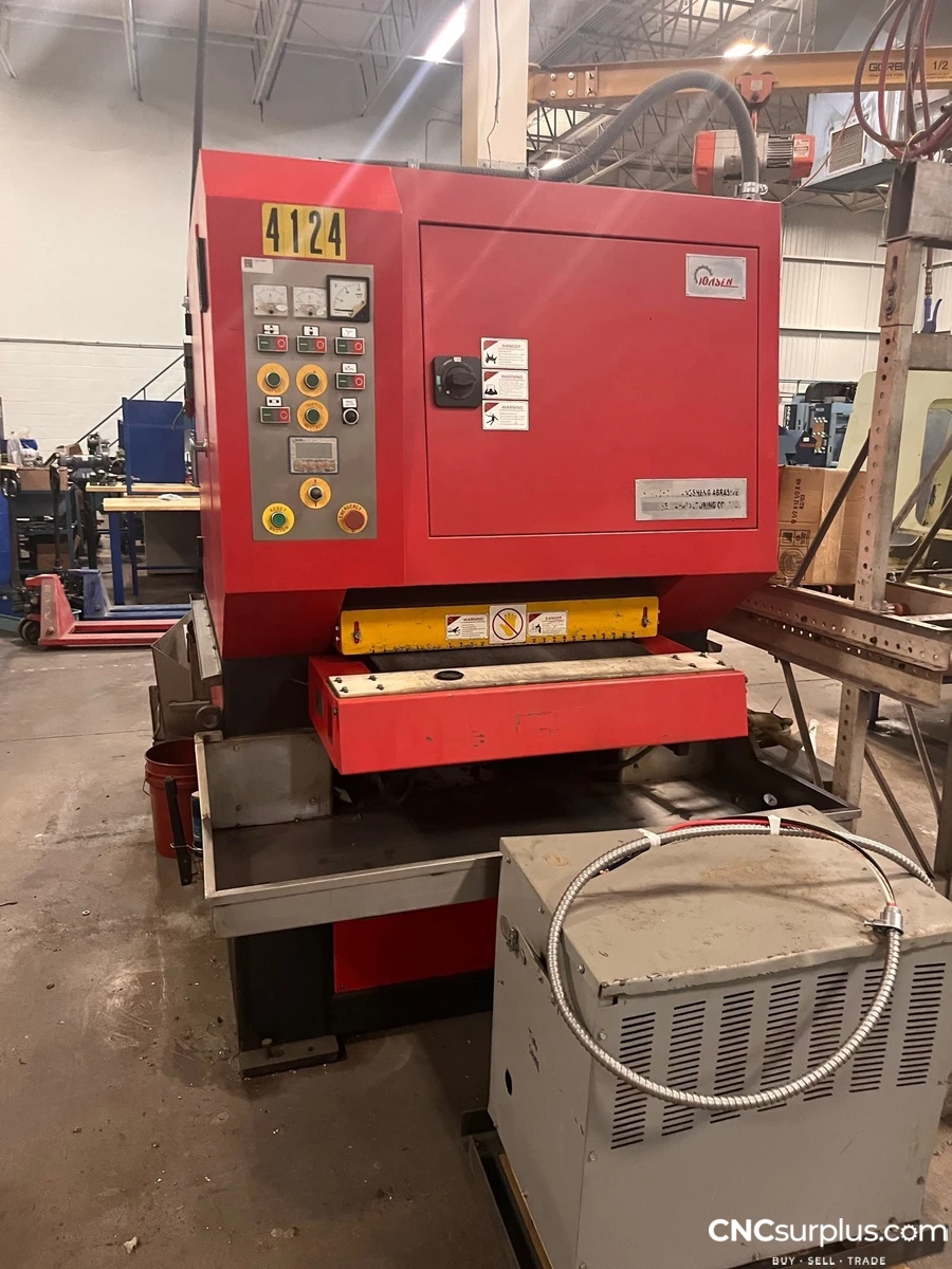 Jonsen SG630-2WJS Wet Operation Wide Abrasive Belt Sanding Machine, Conveyor Feed Through, Automatic Belt Tracking Mechanism, Automatic Cutting Fluid Filtration