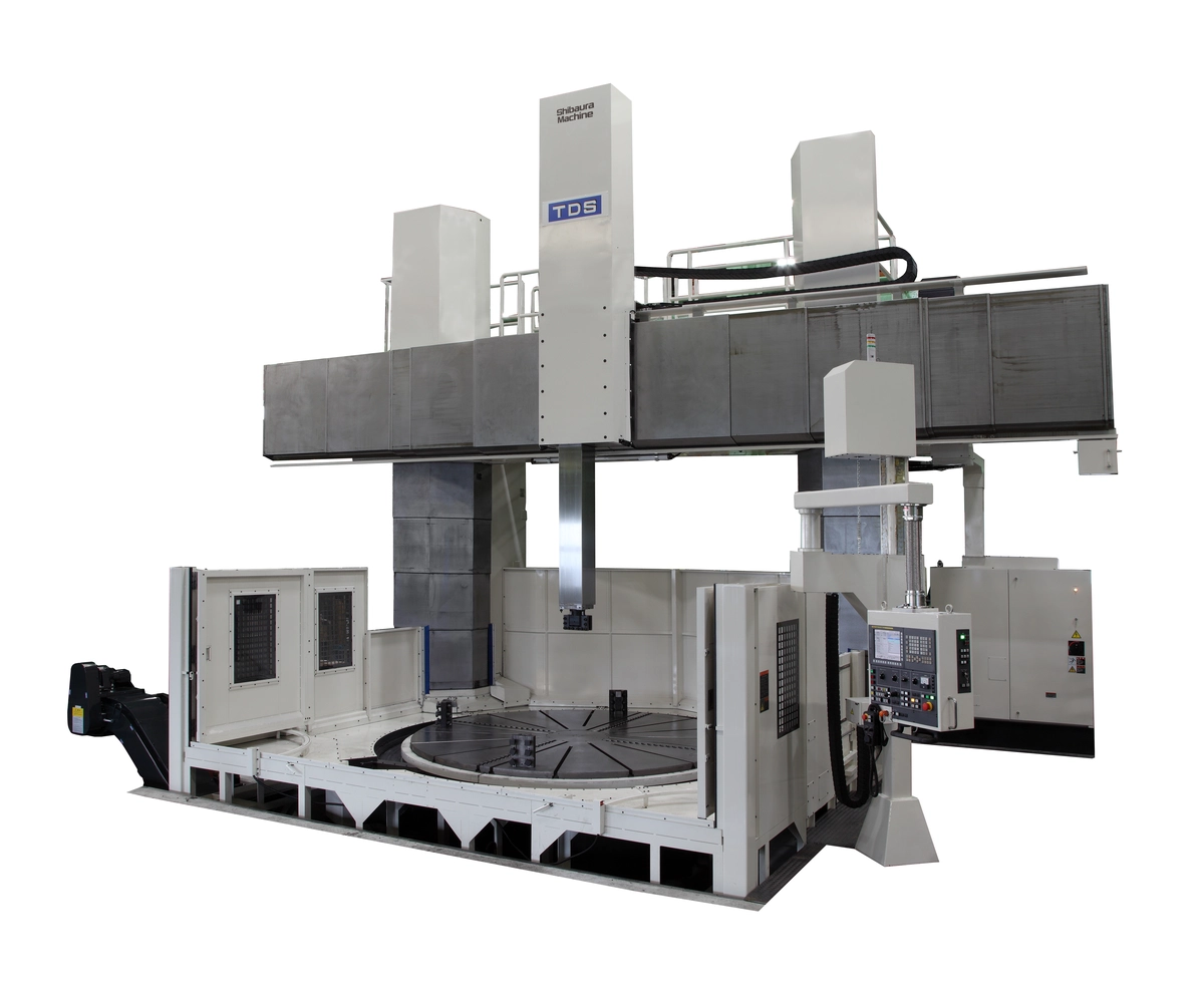 Shibaura Machine TDS-30/40(S) Double-Column CNC Vertical Boring And Turning Mill, Ram-Type Spindle Head, Spindle Head Cooling Unit, Table Oil Cooling Unit, Cross-Rail Step Positioning Unit