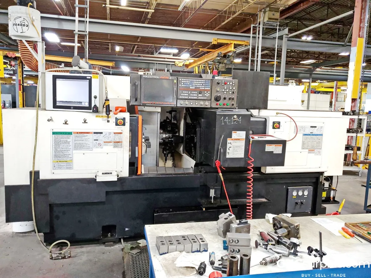 2012 Mazak Multiplex 6300-II Y Multi-Axis CNC Lathe, Twin-Spindles, Dual Turrets, Y-Axis, Live Tooling, High-Pressure Coolant, 10" Power Chucks, Work Unloader W/ Conveyor, Mist Collector