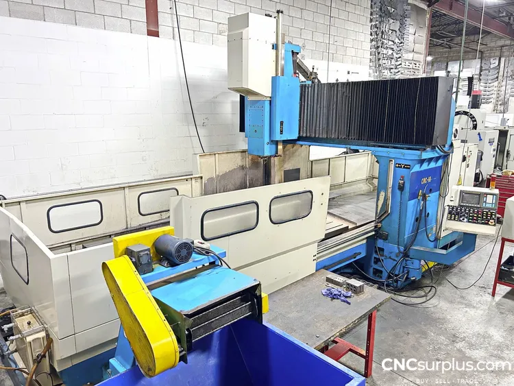 1997 Sanco SM-3000G Double-Column Vertical CNC Machining Center, Coolant System, Fanuc Servo Drive Motors, Lamoine Rtm Programming System, Automatic Lubrication System, Chip Conveyor