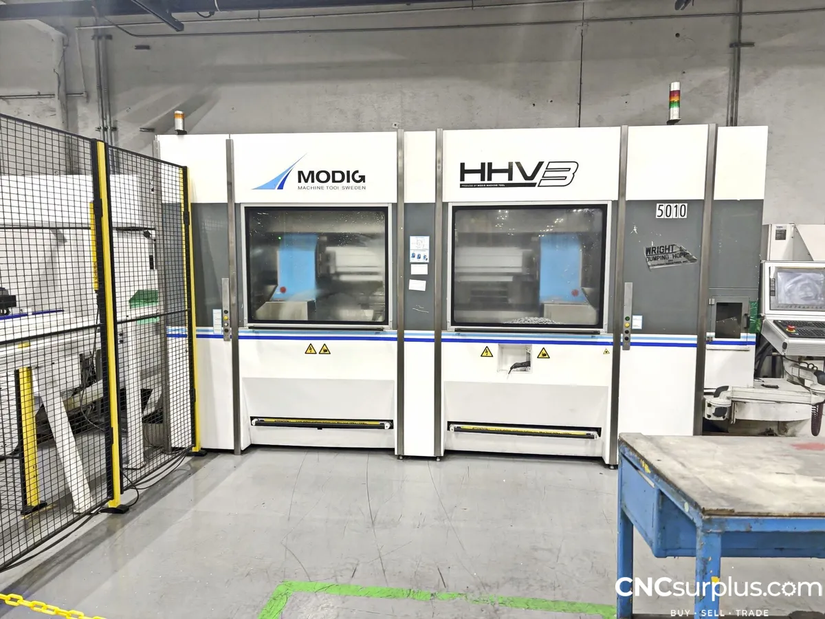 2021 Modig HHV3 Universal CNC Machining Center, 5-Axis, TSC, Automatic Infeed Unit, Rotary Chucks, Tool Measuring Probe, Infeed Conveyor System, Ambient Coolant Control