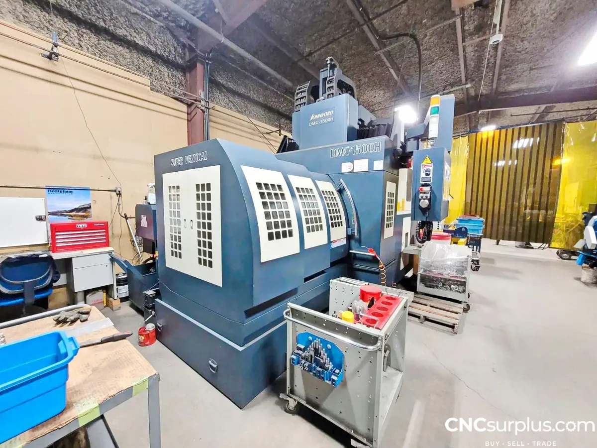 2012 Johnford DMC-1500H Bridge-Type Vertical CNC Machining Center, TSC, 4th Axis Rotary Table, Renishaw Wireless Probing, Data Server, Upgraded Memory, Chip Conveyor, Additional Tool Holders