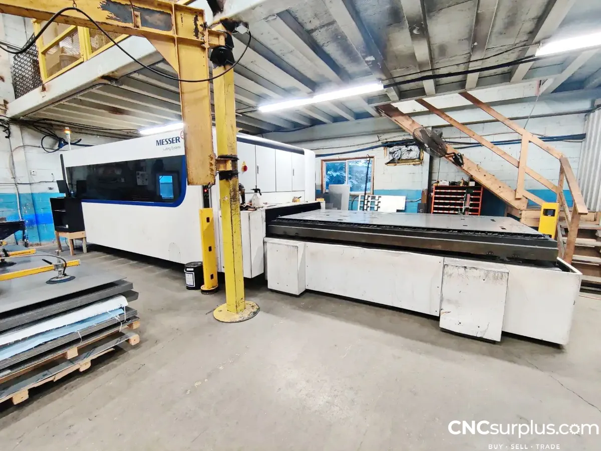 2019 Messer Fiberblade V 3015 CNC Fiber Laser Cutter, 8 kW IPG Laser, Dual-Pallet Shuttle Table, Double-Side Suction Fume Extraction, Chiller Unit, Automatic Nozzle Cleaning, Automatic Height Calibration, Light Curtain Safety System, Lens Condition Monitoring