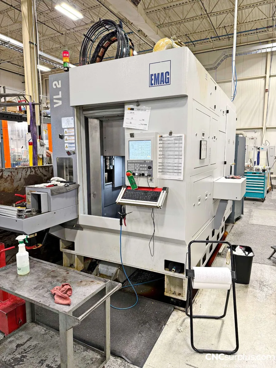 2018 Emag VL 2 Vertical Pick-Up CNC Lathe, Pick-Up Spindle Automatic Loading System, Integrated Part Conveyor System, Hydraulic Power Chuck, Vertical Spindle Configuration, Chip Conveyor, Assorted Tooling