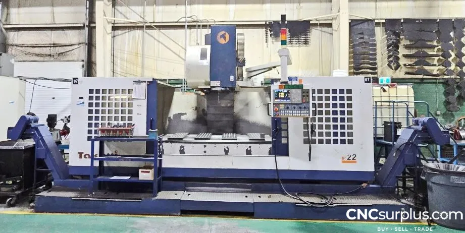 2004 Takumi V22 Vertical CNC Machining Center, Through Spindle Coolant, Side-Mount Tool Changer, BT-50 Gear-Driven Spindle, Dual Chip Conveyors, Spindle Cooler, Spindle Air Blast